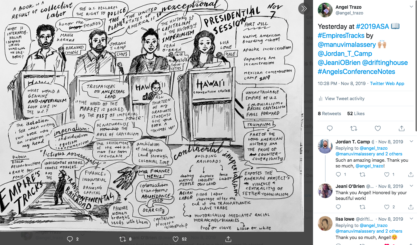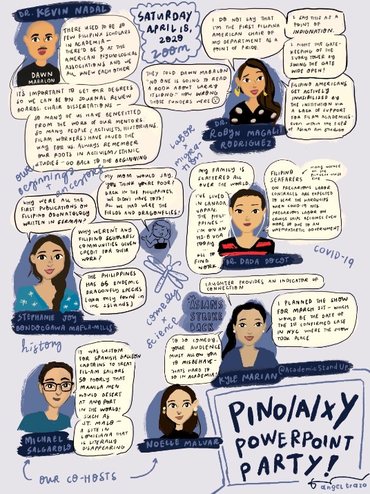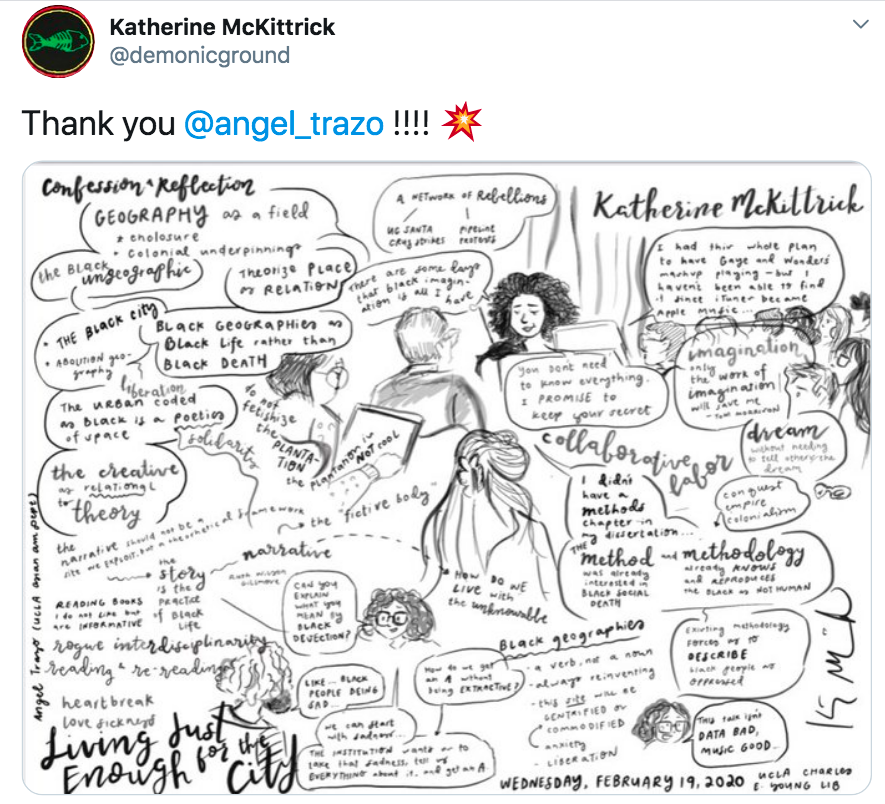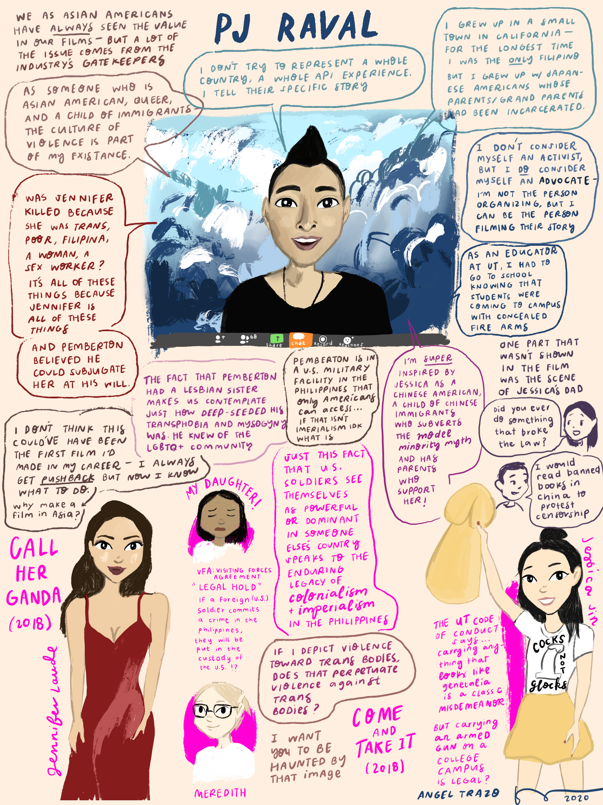In real-time during an event, I combine sketches, hand-written notes, and inspiration from my physical context to create what I call 'visual-notes' or 'notes & doodles.' Onlookers often liken my work to the practice of 'graphic recording' or 'graphic facilitation,' others to comic book illustration. I began this style of note-taking with the project Notes & Doodles' (2016-2017) I created as part of my college art thesis. The style of my practice developed more-or-less organically, as I have always been one to add illustrations or diagrams to my classnotes. I'd also just taken a seminar on figure drawing and happily used my environment to practice sketching the human form. This project continues as a (somewhat) daily practice. Overall, I see 'visual-notetaking' as the best way I know how to keep focused during lectures and conferences, by taking notes I can reference in the future. Read my Amerasia piece on how I use visual notetaking as Asian American art practice here.