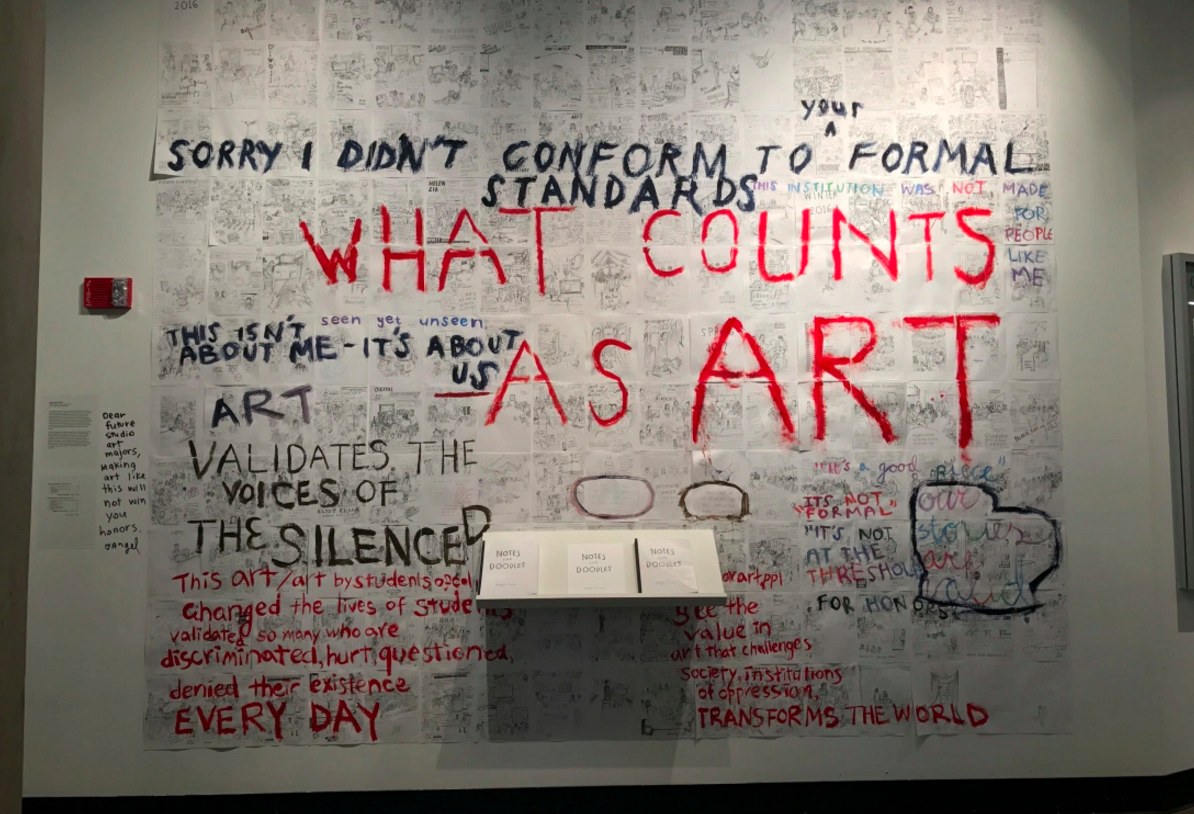 Notes & Doodles was displayed in the NOTHING IS LESS. LESS IS MORE. MORE IS TOO MUCH. show in the Clifford Art Gallery at Colgate University from April 19-May 21, 2017. Photos by Mark Williams and Angel Trazo.