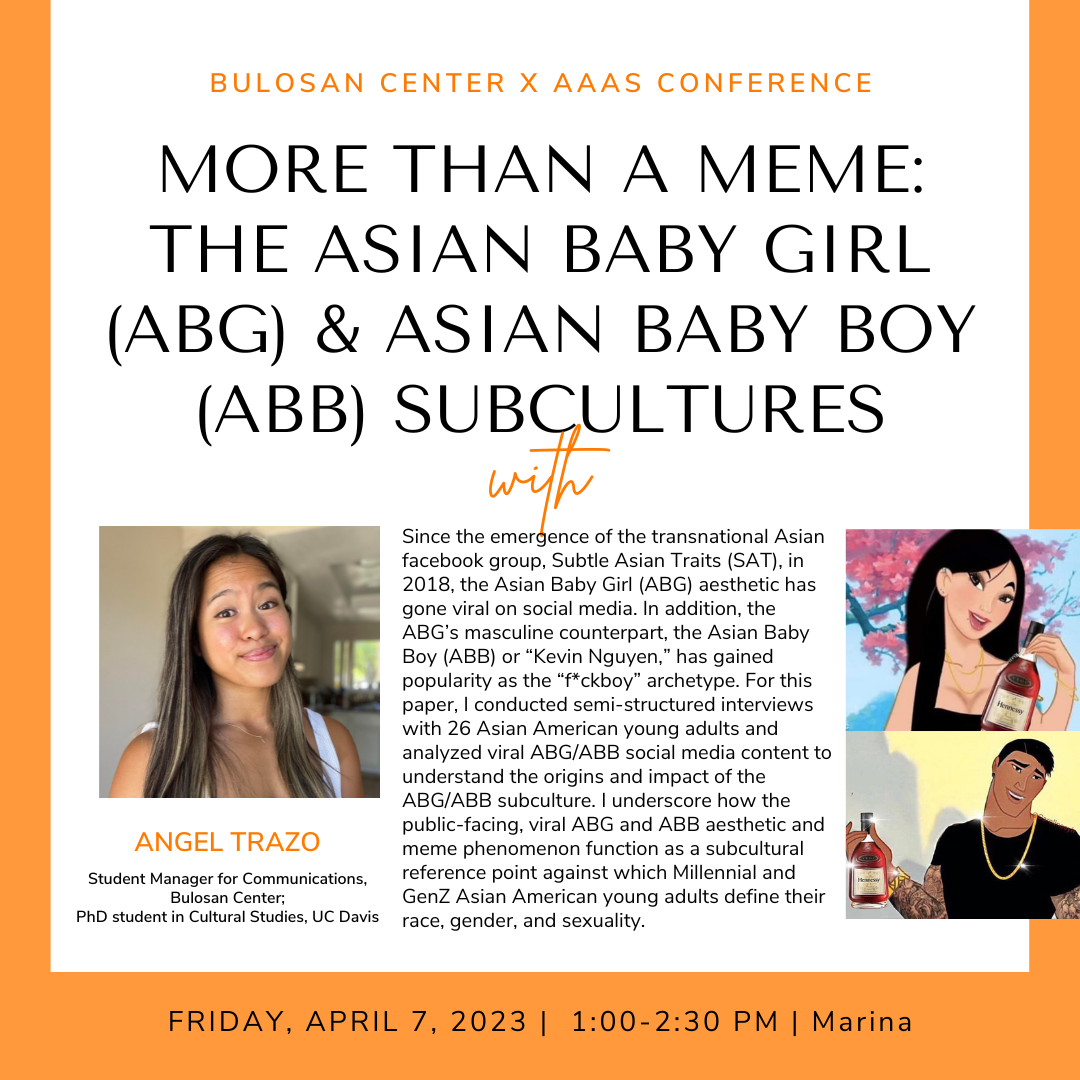 My current research focuses on Asian American social media, popular culture, and youth cultures, specifically the Asian Baby Girl (ABG) subculture.Want to contribute to my reserach project on the ABG?